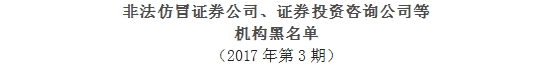 信说“打非”——非法仿冒证券公司、证券投资咨询公司等机构黑名单(2017年03期)