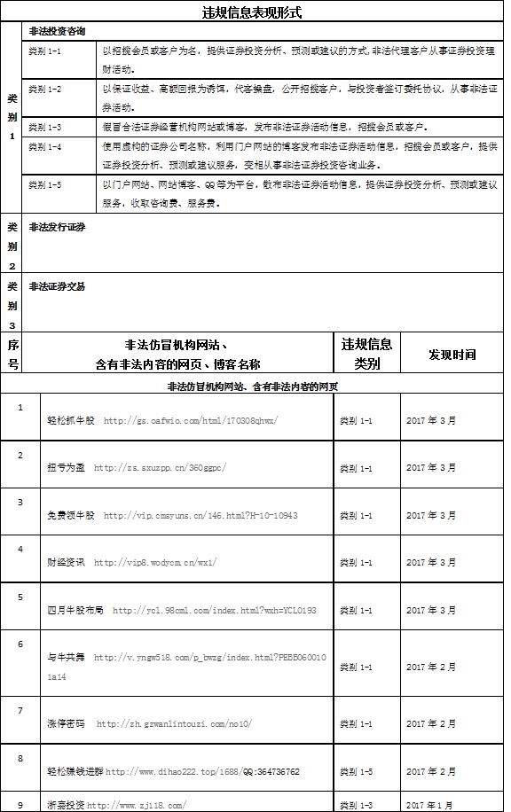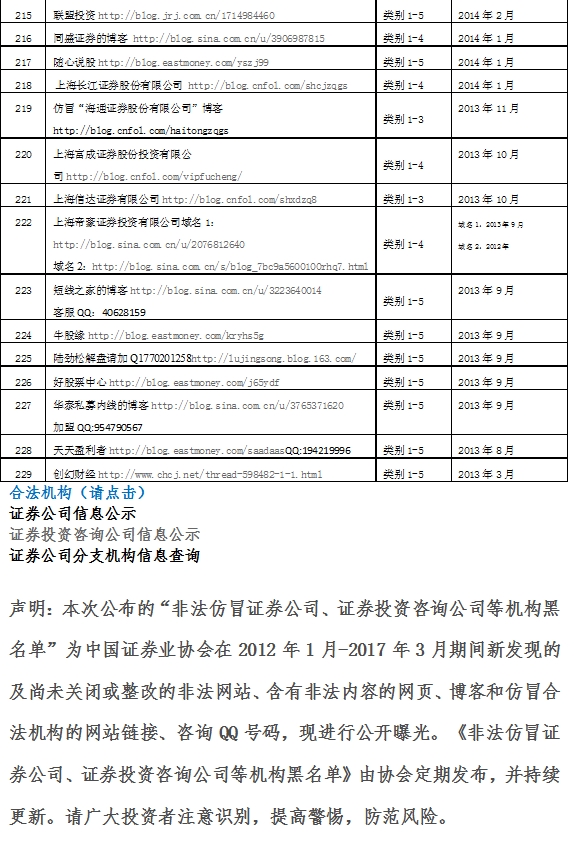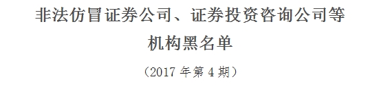 信说“打非”——非法仿冒证券公司、证券投资咨询公司等机构黑名单(2017年04期)