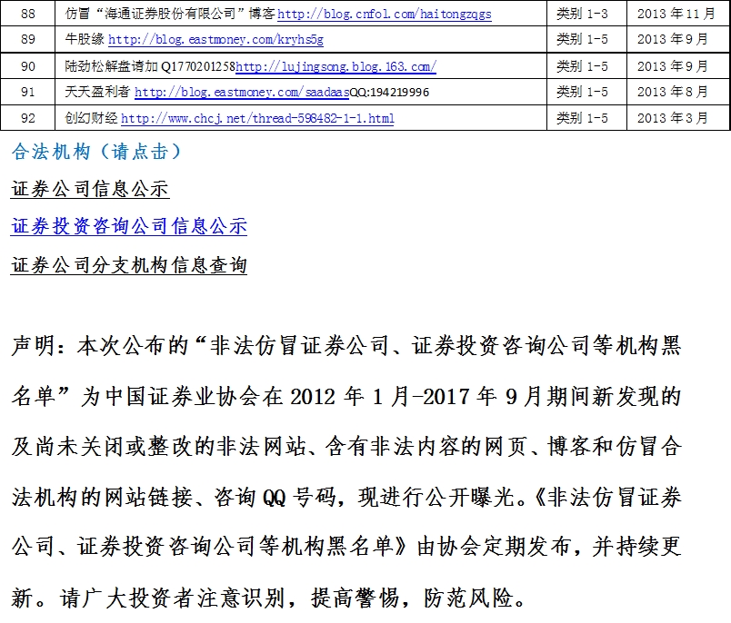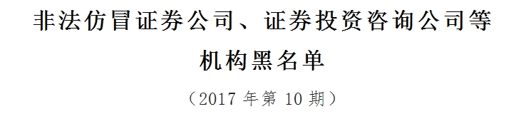 信说“打非”——非法仿冒证券公司、证券投资咨询公司等机构黑名单(2017年10期))