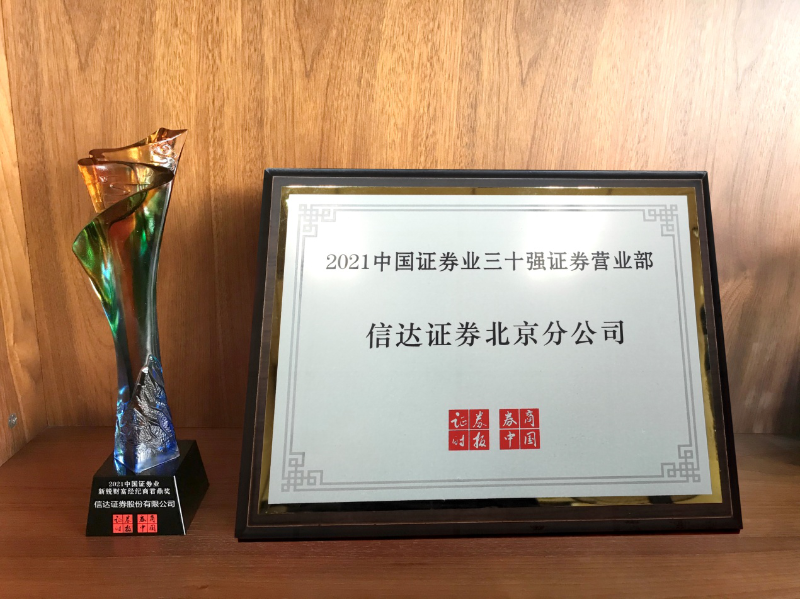 2021年10月28日,由《证券时报》主办的“2021中国证券公司年会暨君鼎奖颁奖典礼”在深圳圆满举办。在此次“中国证券业君鼎奖”评选活动中,信达证券荣获“2021中国证券业新锐财富经纪商君鼎奖”、信达证券北京分公司荣获“2021中国证券业三十强证券营业部”!