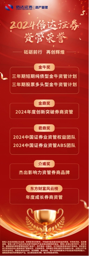 近年来,信达证券持续推动资管业务转型创新,强化主动投研管理能力、渠道合作建设和专业团队建设,驱动业绩稳步增长;深耕固收及“固收+”产品,逐步推出多策略产品、跨境理财等创新型产品,不断延伸产品体系,提高财富管理服务能力,满足客户多样化需求,为客户提供全方位、高质量的综合服务。信达证券资管业务连续多年荣膺金牛奖、金鼎奖、君鼎奖、介甫奖等主流券商资管行业大奖,是公司以专业深化资管品牌建设的有力体现。